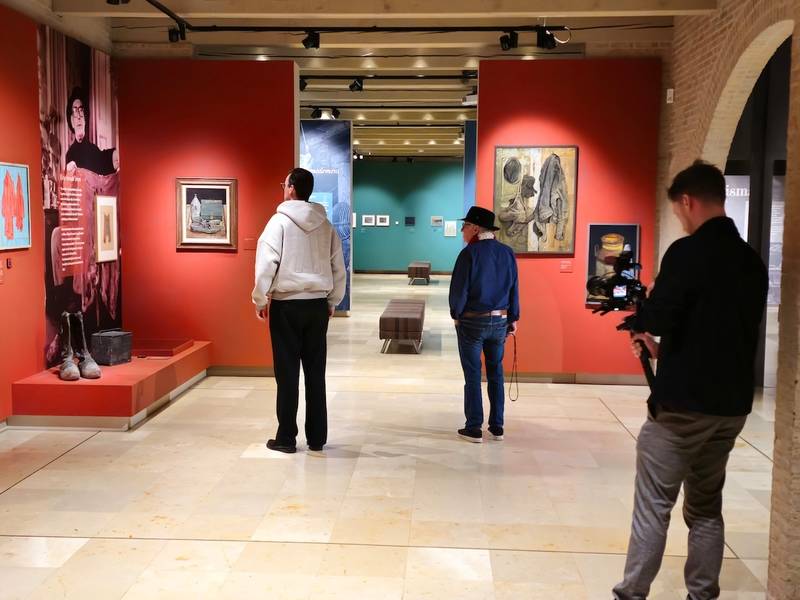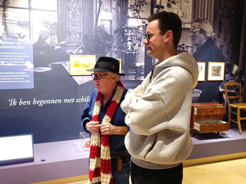 Splinter Chabot en Youp van ’t Hek voor tv-rubriek ‘Uit de Kunst’ in het Jopie Huisman Museum