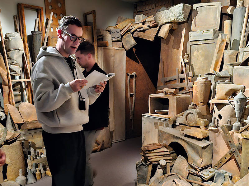 Splinter Chabot en Youp van ’t Hek voor tv-rubriek ‘Uit de Kunst’ in het Jopie Huisman Museum
